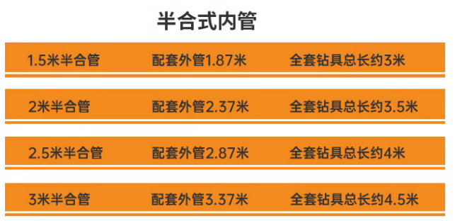 常用的半合管單動雙管鉆具規(guī)格:Φ75、91、110