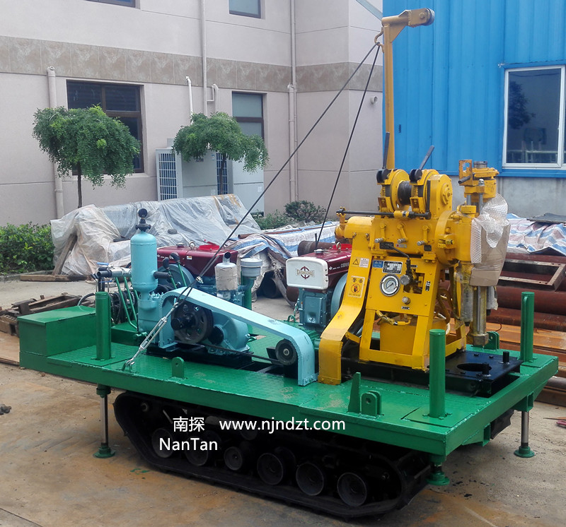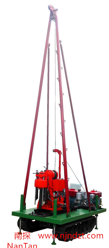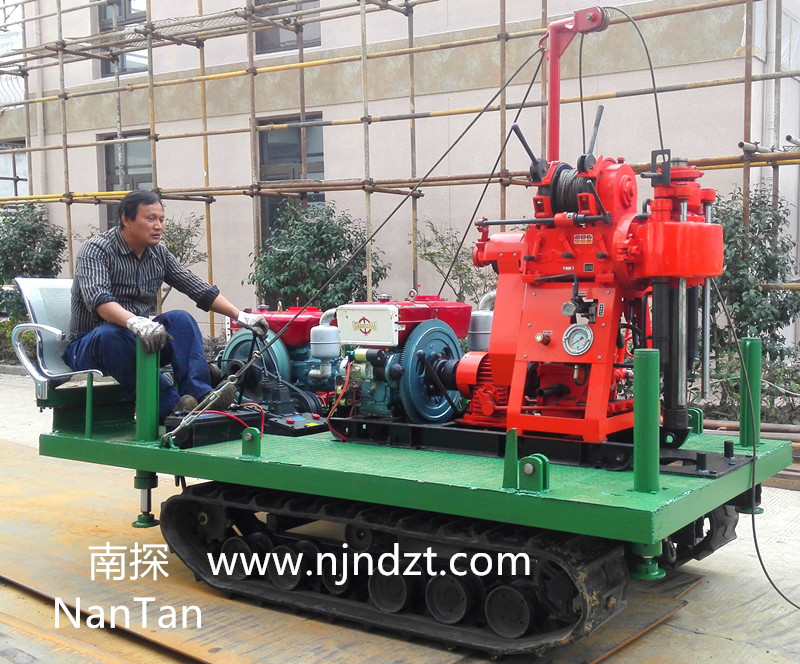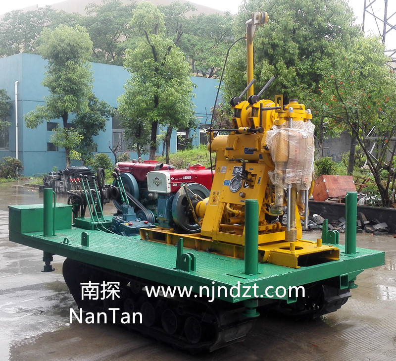 該履帶底盤承載重量達4T,可以裝載各種小型鉆機,如:XY-1-1、XY-1、XY-1A、XY-1A(YJ)、XY-1A-4、XY-1A-5、XY-1B、XY-1B-1、XY-1B-2、XY-200、XY-200(YJ)、XY-200B、XY-200B-1、XY-200B-2、GXY-1系列、GXY-2Q、GXY-200B、GYQ-200、GYQ-200A、GK180、GXY-2K、GXY-2C等100-300米鉆機,并可同時裝載BW160、BW160ABW200BW200A型泥漿泵,具有利用鉆機卷揚機起落鉆塔、行走方便等特點,廣泛適用于公路、鐵路、水電、橋梁、壩基等的工程地質(zhì)勘察、地質(zhì)巖芯鉆探、物理勘察、小型灌漿孔、爆破孔、水井孔和空調(diào)孔的鉆進。