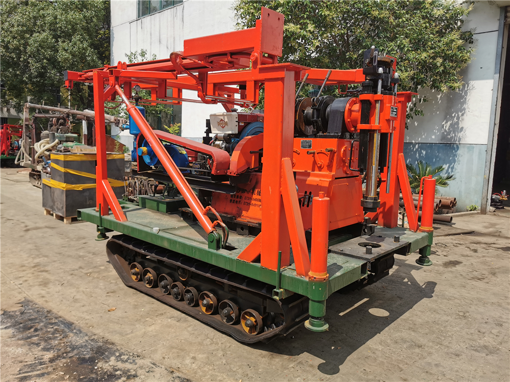 1、鉆機(jī)機(jī)組由履帶底盤、柴油機(jī)、鉆機(jī)及柴油機(jī)、龍門自動(dòng)全液壓起落鉆塔(采用龍門形鉆塔,升高型液壓油缸作支撐,操縱閥控制鉆塔起落、升降,操作省時(shí)省力,安全可靠)泥漿泵組成。