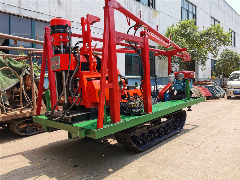 4、鉆機(jī)、泥漿泵、塔架一體,搬家方便快捷,可自行上下汽車。搬家時(shí)鉆桿鉆具等一切東西均可放在履帶底盤上一次運(yùn)走。