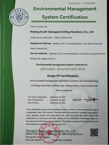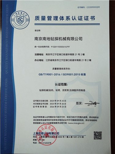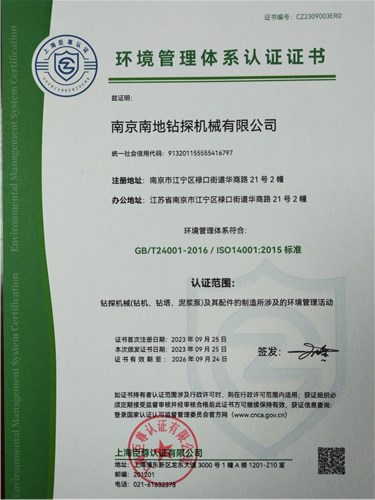 企業(yè)通過(guò)ISO9001:2015質(zhì)量管理體系認(rèn)證、ISO14001:2015環(huán)境管理體系認(rèn)證、ISO45001:2018職業(yè)健康安全管理體系認(rèn)證。