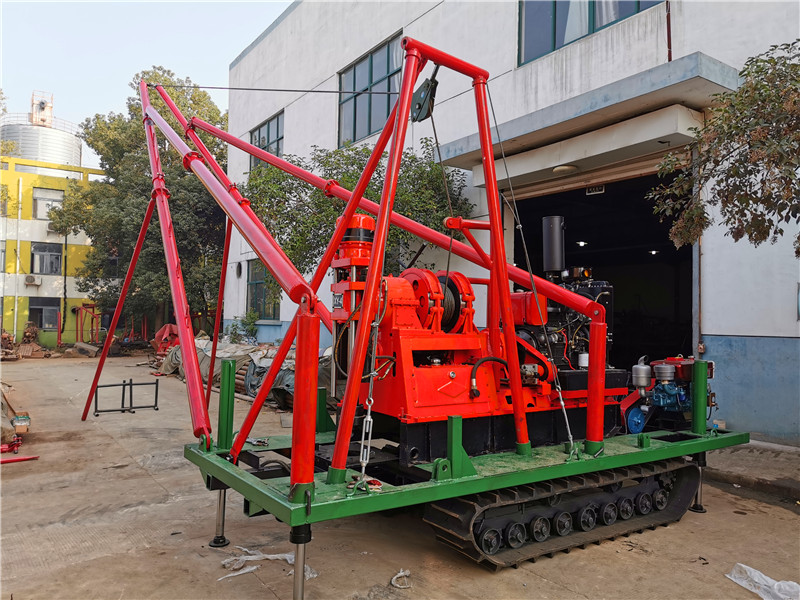 鉆機機組由履帶底盤、柴油機、液壓支腿、鉆機、直斜兩用鉆塔組成,共同組裝在一個機架上。鉆機可以選擇柴油機或電動機、履帶底盤及液壓支腿由獨立柴油機帶動、互不干涉。